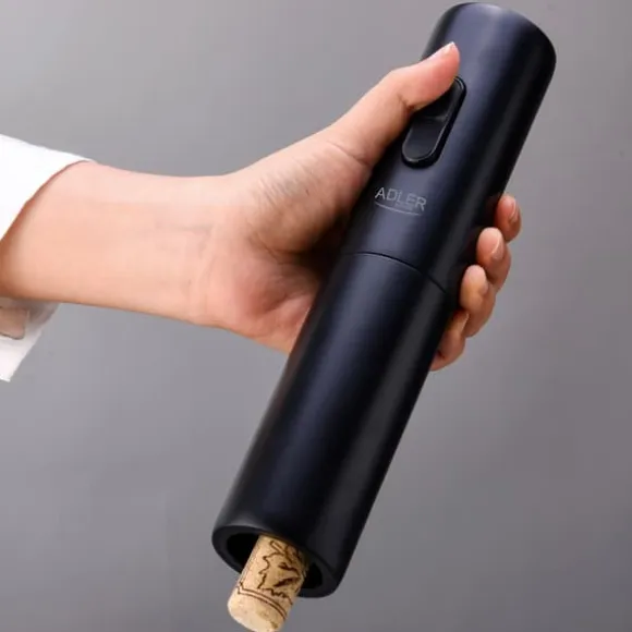 Upptäck Adler AD 4509 setet, en elektrisk vinöppnare som ger dig bekvämlighet och elegans vid öppning av vilken vinflaska som helst. Detta stiliga och moderna set är den perfekta lösningen för vinälskare som uppskattar enkel användning och högkvalitativt hantverk. Den automatiska vinöppnaren öppnar enkelt flaskor på några sekunder med ett knapptryck, vilket eliminerar behovet av manuellt arbete. Setet inkluderar även en praktisk folieskärare som noggrant avlägsnar skyddsfolien från vilken flaska som helst samt en kork som säkerställer att du kan stänga en öppnad vinflaska och bevara dess fräschör och arom längre. Den är kompatibel med alla typer av vinkorkar med en diameter på 20 till 24 mm, vilket gör den till ett mångsidigt verktyg för varje vinentusiast. Enheten drivs av fyra 1.5V AA-batterier (ingår ej), vilket ger bekvämligheten av att använda den utan behov av ett eluttag.