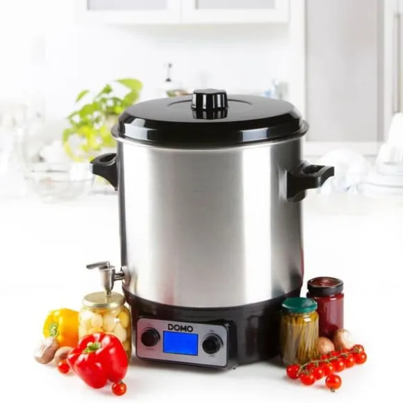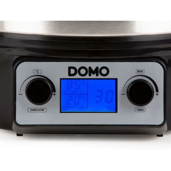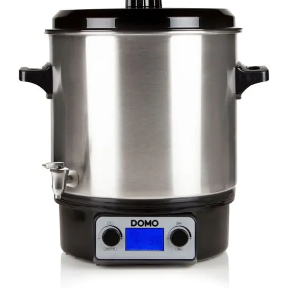 Upptäck den elektriska grytan DOMO DO42326PC med temperaturdisplay och kontroll. Utrustad med överhettningsskydd och automatisk avstängning garanterar den säker matlagning. Dess yta i rostfritt stål och en effekt på 2000 W säkerställer prestanda och hållbarhet. Dimensioner: 49 × 45,5 × 41,5 cm.