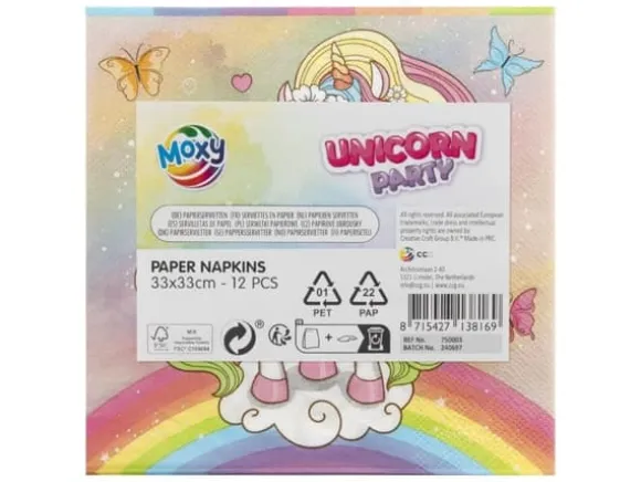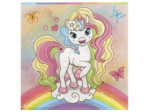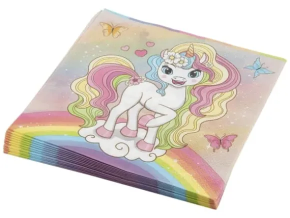 Det perfekta tillskottet till alla magiska födelsedagskalas! Detta set innehåller 12 pappersservetter som mäter 33 x 33 cm, med en söt enhörningsdesign. Dessa pastellfärgade servetter kommer inte bara att ge en sagolik touch till ditt bord, utan är också perfekta för att servera snacks eller städa upp spill.
