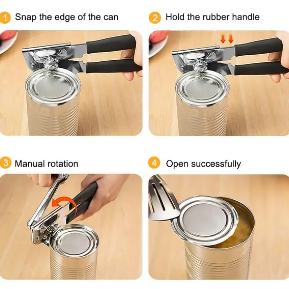 Hållbar kolstålkonstruktion: Tillverkad av högkvalitativt kolstål, denna konservöppnare är mycket slitstark. Det robusta materialet säkerställer långvarig prestanda, motstår böjning eller brytning även med tuffa burklock.