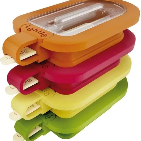 Setet med 4 eskimåisformar från märket LEKUE är idealiska för att enkelt göra hemgjorda vattenglassar. Dessa formar är gjorda av platinasilikon och tål både frys och diskmaskin. Med en diameter på 7 cm är de staplingsbara för att spara utrymme i frysen och försedda med lock för att skydda glassen från lukt.