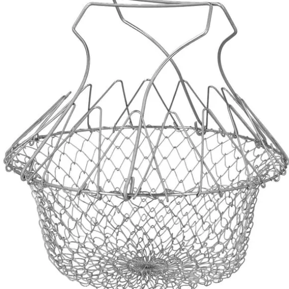 Du behöver inte tusen olika kökstillbehör. Använd en smart frityrkorg till flera saker istället. Frityrkorgen är vikbar och kan även användas som durkslag, placeras ovanpå kastrullen för ångkokning eller som kastrullinsats. Självklart kan den även användas för att smidigt skölja grönsaker, eller helt enkelt som en stilren fruktkorg. Den tåliga frityrkorgen är gjord i rostfritt stål och är lätt att rengöra efter användning.