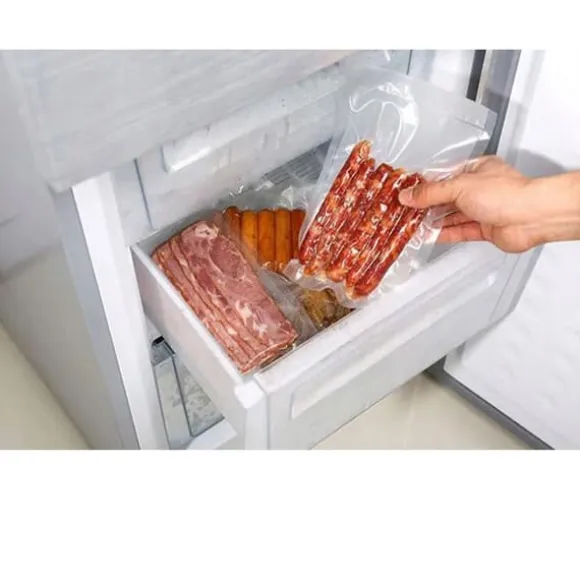 FOLIE FÖR VAKUUMFÖRLÄGNINGSMASKIN Bredd: 25 cm Längd: 6 m Struktur: räfflad Sammansättning: PA / PE FÖRDELAR MED MATFOLIE FÖR BASS POLSKA FÖRSEGLINGSMASKINER Möjliggör vakuumförpackning av livsmedel med Bass Polska elektriska folieförseglingsmaskin, modell BH 10625.. Foil. för matförseglingsmaskinen kan förlänga hållbarheten för vissa livsmedelsprodukter upp till fem gånger. Vakuumförpackningsfolie förhindrar inträngning av livsmedelslukter. Ytan på folien har speciella spår för att underlätta luftsugning. Det är säkert för mat och innehåller inte bisfenol (BPA-fritt).