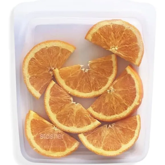 Stasher återanvändbar förvaringspåse i silikon, 1 liter (transparent) är perfekt för måltidsförberedelse, luncher, resor och mycket mer. Denna livsmedelsbehållare tål frys, ugn, mikrovågsugn och diskmaskin. Den är vattentät, bärbar och återanvändbar, vilket gör den idealisk för att hålla dina livsmedel färska och organisera ditt kök eller sportväska. Stasher erbjuder ett hälsosamt och hållbart alternativ till engångsplastpåsar.