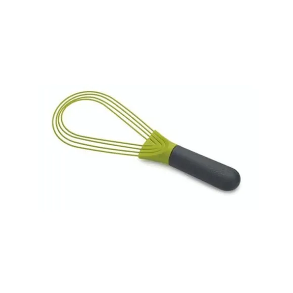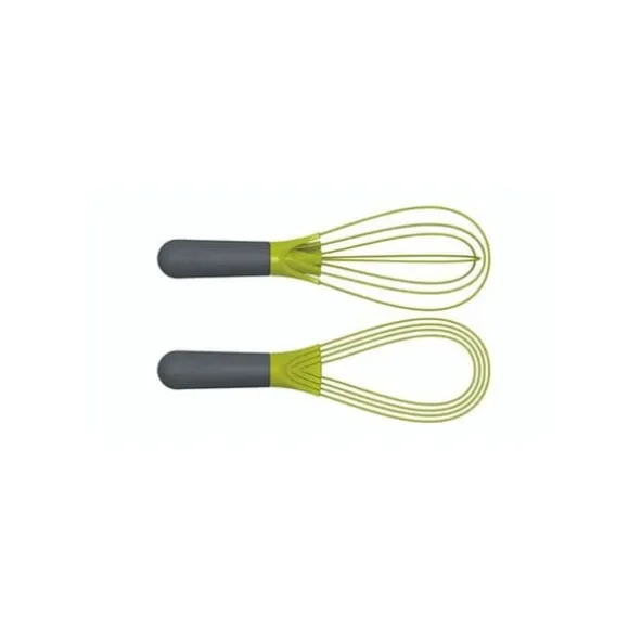 Joseph Josephs 2-i-1 Twist™ visp gör det enkelt att växla mellan en ballongvisp och en platt visp. Med sin kompakta design och sina silikonbelagda ståltrådar tål den temperaturer upp till 200°C. Perfekt för non-stick-köksredskap, och den är även diskmaskins säker.