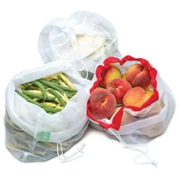Skippa plast eller papperspåsen. Använd istället dessa påsar i nät när du ska handlar eller förvarar frukt och grönsaker. 5 färgkodade påsar. 1st 38×28