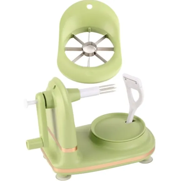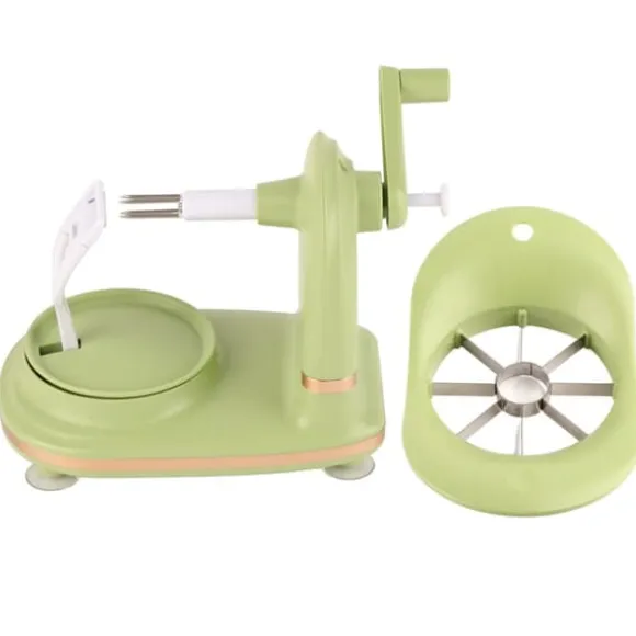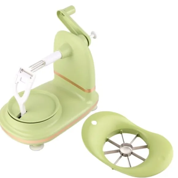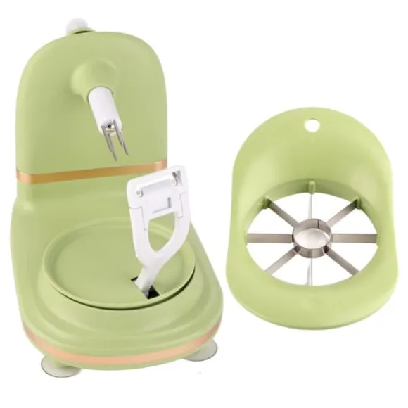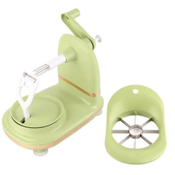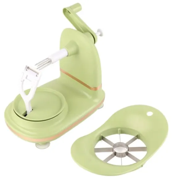 Denna äppelskalare har en lättanvänd design med en utsökt och liten kropp, vilket gör äppelskalningsprocessen trevlig. Rikta helt enkelt in mitten av frukten, sätt in den, rotera medurs i cirka 5 sekunder tills skalet tas bort och tryck sedan försiktigt på nyckeln för att dra ut frukten för att frigöra frukten.