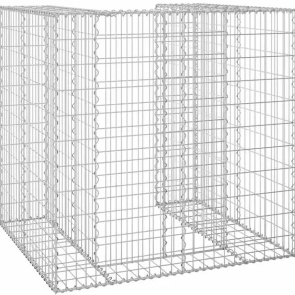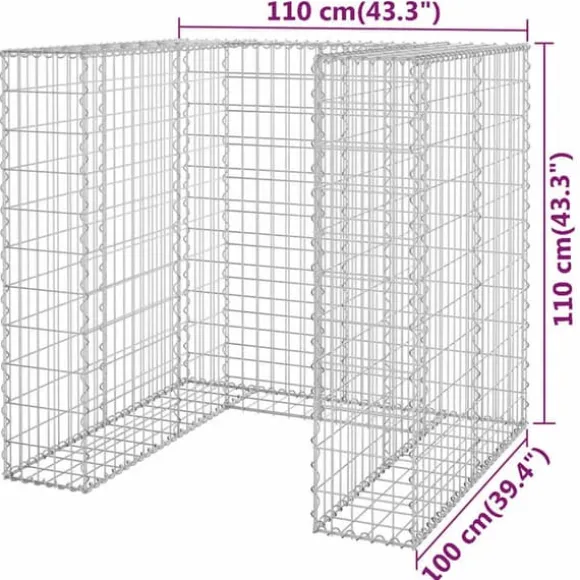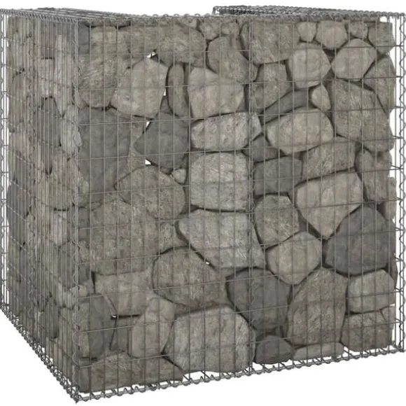 Den robusta gabionen är utformad för att fyllas med stenar eller grus. Stenkorgen är tillverkad av rost- och väderbeständigt galvaniserat stål och är mycket stabil och hållbar. Nätgallret är svetsat med tvärgående och längsgående ledningar vid varje korsning för extra stabilitet. Denna gabionvägg kan rymma 1 soptunna.