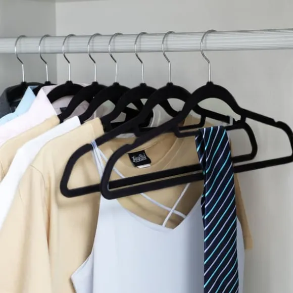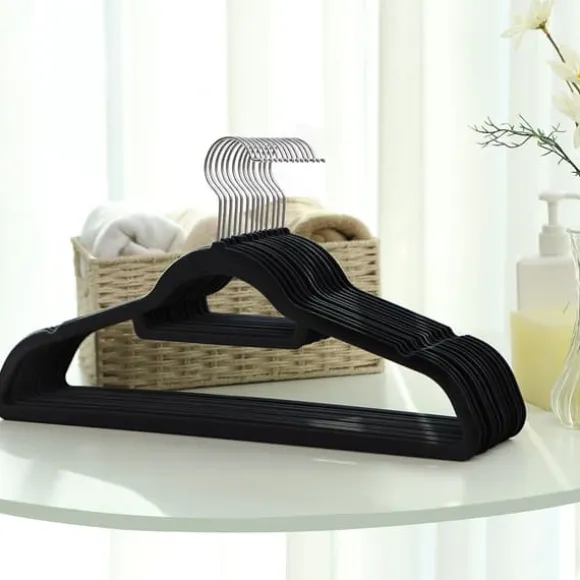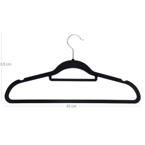Gör garderoben mer organiserad och stilren med detta 20-pack galgar med sammet. Med en tjocklek på bara 0,6 cm frigör du enkelt plats för fler plagg utan att kompromissa med stabilitet eller funktion. Den halkfria sammetsytan ser till att även glatta material som siden eller viskos hänger säkert utan att glida av.