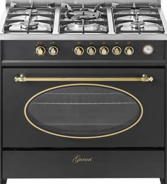Upptäck den elektriska gasugn GURARI GCH E 914 Bl r, med retrodesign och en bredd på 90 cm. Med sina gjutjärnsgrillar och sin multifunktionella elektriska ugn erbjuder den en varierad och effektiv matlagningsupplevelse. Den eleganta svarta färgen passar perfekt i alla kök.