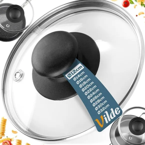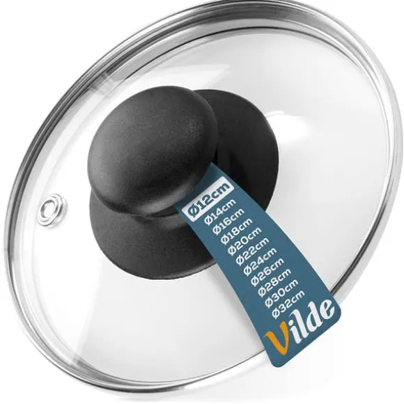 Universalt glaslock, perfekt för köksredskap, stekpannor och grytor av denna storlek. Tillverkat av slitstarka och solida material. Det blir ett utmärkt komplement till en gryta eller stekpanna som inte levererades med lock. Den klassiska formen garanterar bekväm användning. Ett lock är oumbärligt i varje kök. Det hjälper maten att tillagas snabbare och skyddar mot stänkvatten och fett. Dessutom hjälper locket att maten håller sig varm längre. Original Vilde-produkt. Tillverkad i enlighet med europeiska standarder.