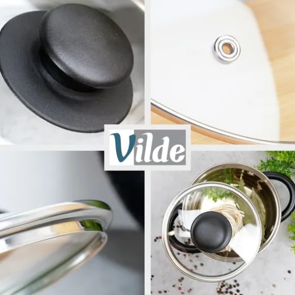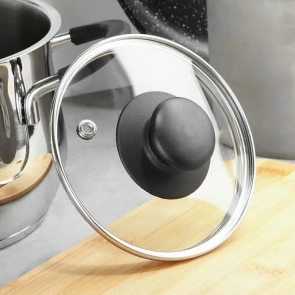 ✅ Tillverkad av värmebeständigt glas – Locket är tillverkat av värmebeständigt, transparent glas. Det har en silverfärgad kant i rostfritt stål och ett slitstarkt svart plasthandtag. Lockets transparenta färg gör att du kan kontrollera tillagningsprocessen utan att behöva lyfta det. Locket tål höga temperaturer upp till +200°C.