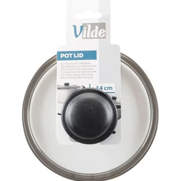 Universellt glaslock, passar perfekt till tallrikar, stekpannor och grytor med en diameter på 14 cm. Tillverkad av slitstarka och solida material. Det blir ett utmärkt komplement till en gryta eller stekpanna som inte levererades med lock. Den klassiska formen garanterar bekväm användning. Ett lock är oumbärligt i varje kök. Det hjälper maten att tillagas snabbare och skyddar mot stänkvatten och fett. Dessutom hjälper locket att maten håller sig varm längre. Original Vilde-produkt. Tillverkad i enlighet med europeiska standarder.