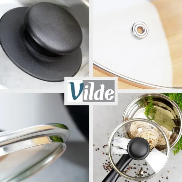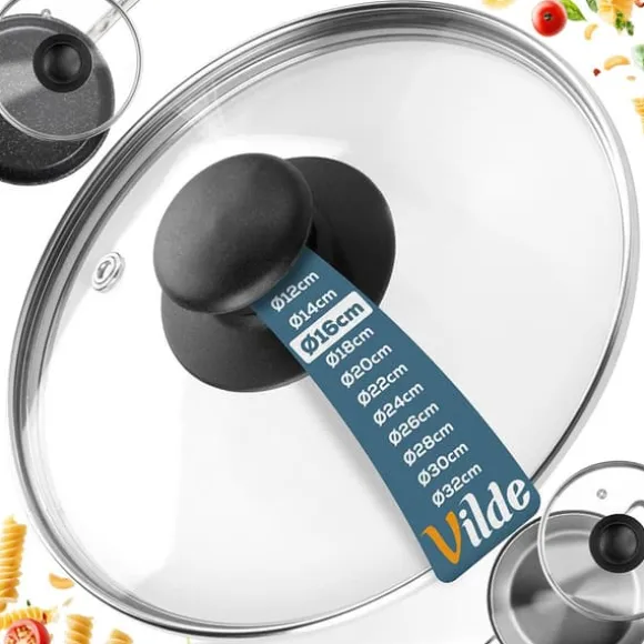Universellt glaslock, passar perfekt för tallrikar, stekpannor och grytor med 16 cm diameter. Tillverkad av slitstarka och solida material. Det blir ett utmärkt komplement till en gryta eller stekpanna som inte levererades med lock. Den klassiska formen garanterar bekväm användning. Ett lock är oumbärligt i varje kök. Det hjälper maten att tillagas snabbare och skyddar mot stänkvatten och fett. Dessutom hjälper locket att maten håller sig varm längre. Original Vilde-produkt. Tillverkad i enlighet med europeiska standarder.