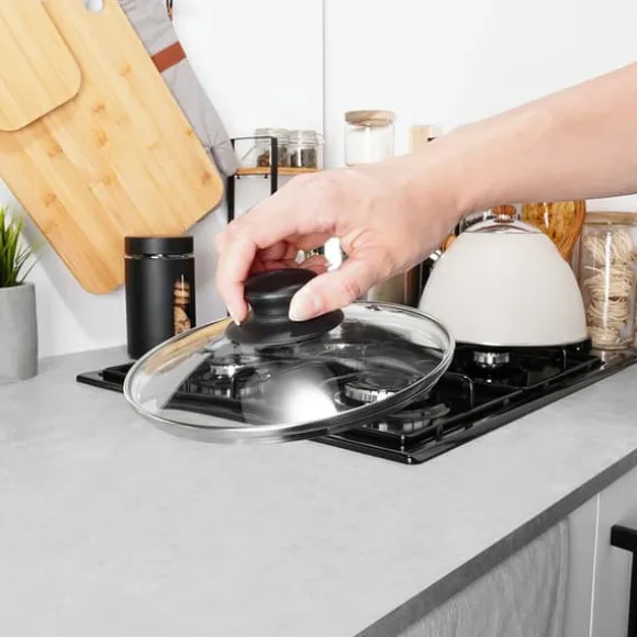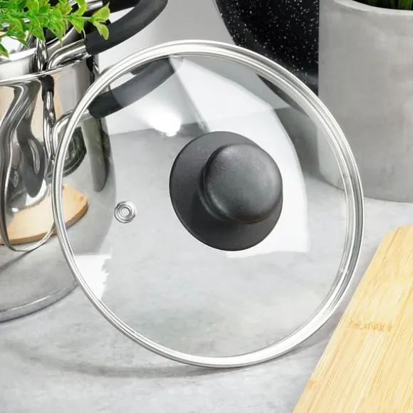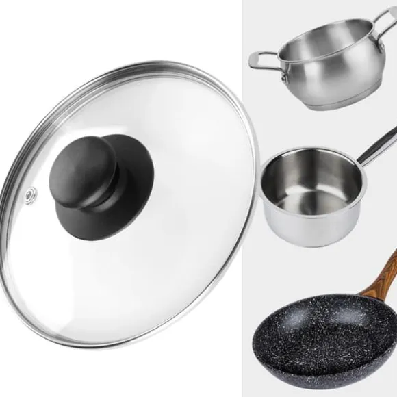 ✅ GLAS – Locket är tillverkat av värmebeständigt, transparent glas. Det har en silverfärgad kant i rostfritt stål och ett slitstarkt svart plasthandtag. Det transparenta locket gör att du kan kontrollera tillagningsprocessen utan att behöva lyfta det. Locket är motståndskraftigt mot höga temperaturer upp till +200°C.