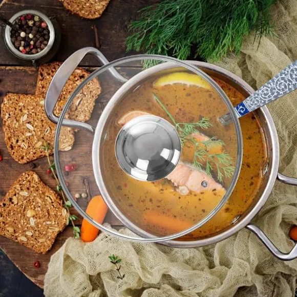 ✅ BEKVÄM – Locket har ett bekvämt handtag, och tack vare kanten sitter locket tätt och glider inte ur grytan.