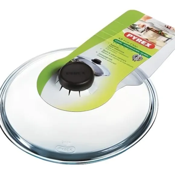 Transparent glaslock med 20 cm och svart bakelitknopp. Idealisk för kastruller och grytor, den är diskmaskinskompatibel. Obs, den passar inte för mikrovågsugn eller ugn med grill.