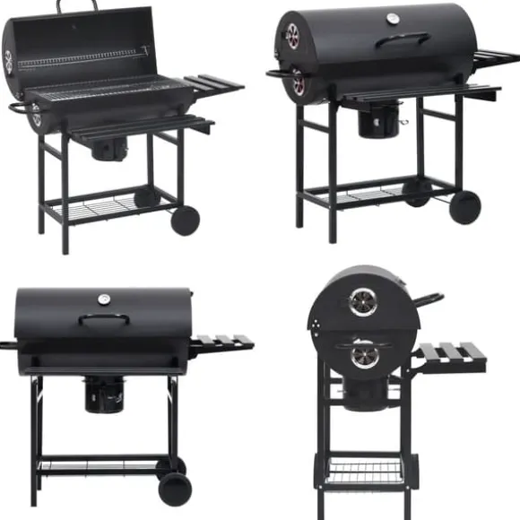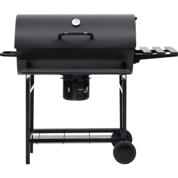 Grilltunnan är tillverkad av slitstarkt stål och är stark och hållbar. Locket med gångjärn har ett praktiskt handtag för att reglera temperaturen och hålla den termostatisk. Värmehyllan är användbar för att hålla maten varm så att du kan servera all mat samtidigt. Denna kolgrill har även ett nedfällbar sidobord och ett bord framtill för extra förvaring. Tack vare hjulen är det enkelt att flytta grillen. Den avtagbara askbehållaren gör rengöringen enkel.
