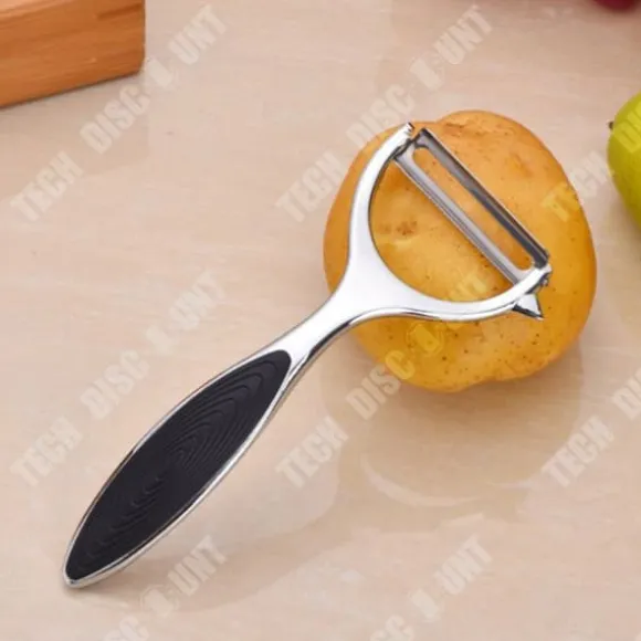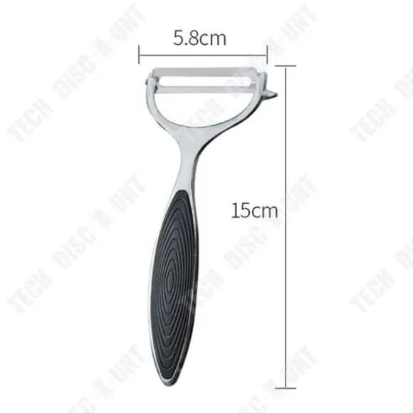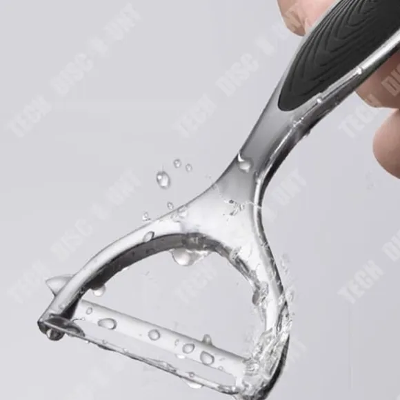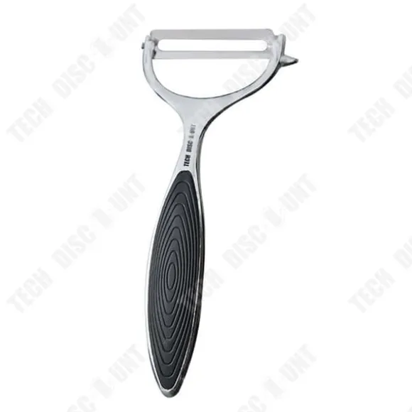 Upptäck den universella skalaren TD® i svart rostfritt stål, perfekt för att skala frukter och grönsaker. Med sin roterande blad och ergonomiska design anpassar den sig till alla former. Lätt att rengöra och diskmaskinsvänlig, det är det perfekta verktyget för ditt kök och en praktisk present.