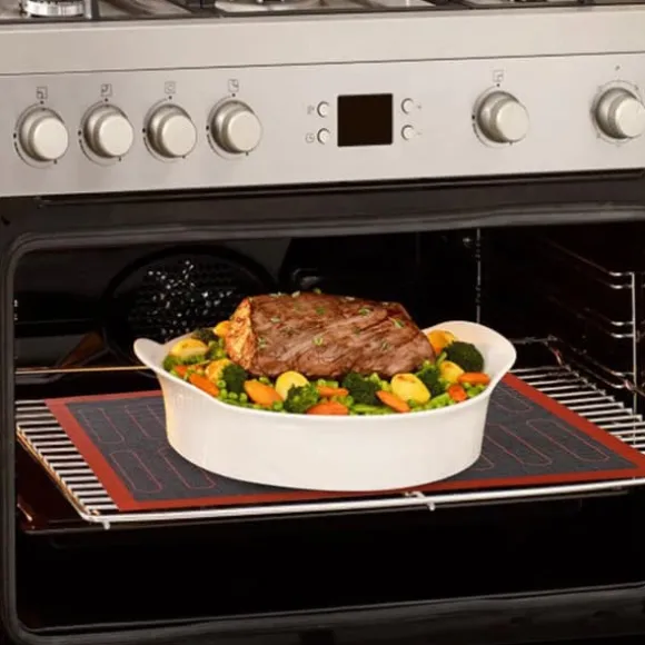 2、 Återanvändbar: Det finns ingen anledning att smörja formen/formarna på nytt med spray, oljor, bakplåtspapper eller aluminiumfolie. Dessa återanvändbara matlagningsmattor eliminerar behovet av feta oljor, fetter, smutsiga sprayer och den extra kostnaden för pergamentpapper eller folie.