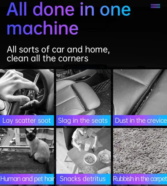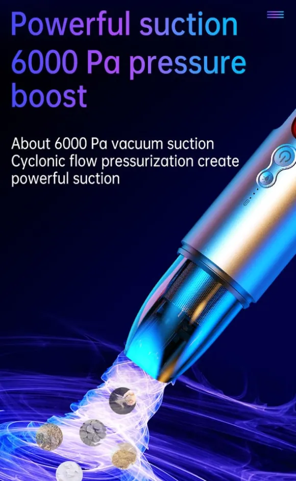 Våt- och torrsug: Välj mellan torr eller våt användning, dammsugaren absorberar snabbt skräp och spilld vätska i bilen (OBS. ej för frätande, brandfarlig och explosiv vätska).