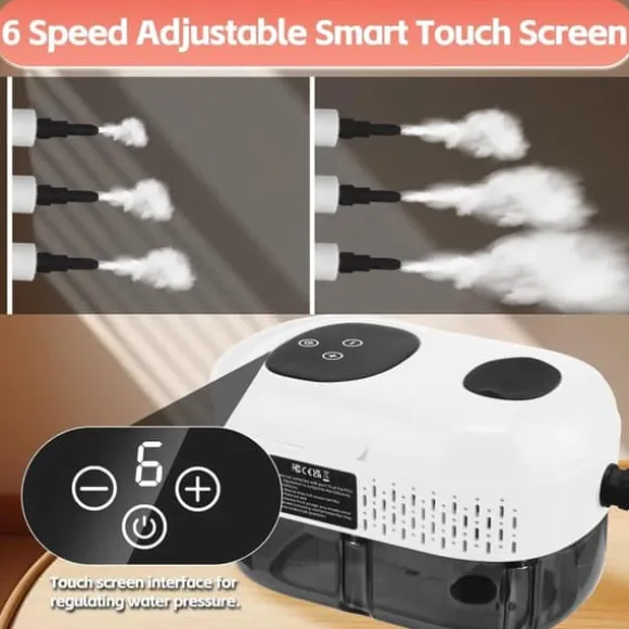 Den digitala touchpanelen med 6 justerbara ångnivåer ger exakt kontroll via ”+/-”-knappar. Med 9 specialtillbehör, 2.2m flexibelt ångrör och 2.5m förlängd kabel täcker du fogar, fönster och mattor effektivt. Den ergonomiska designen med avlång munstycke