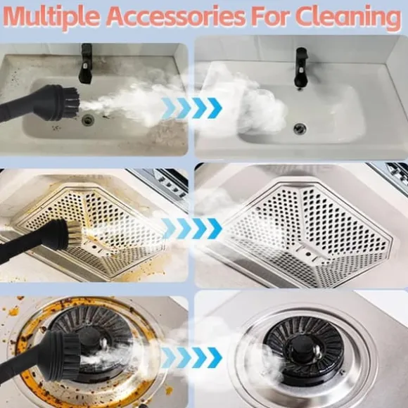 2500W ångtvätt med 3BAR tryck, 1100ml tank och 9 tillbehör för djuprengöring av alla ytorKraftfull ångprestanda