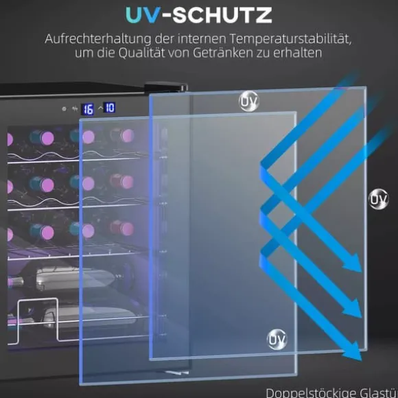 - ✔ Dubbelglasad dörr blockerar UV-strålar och skyddar din värdefulla vinsamling