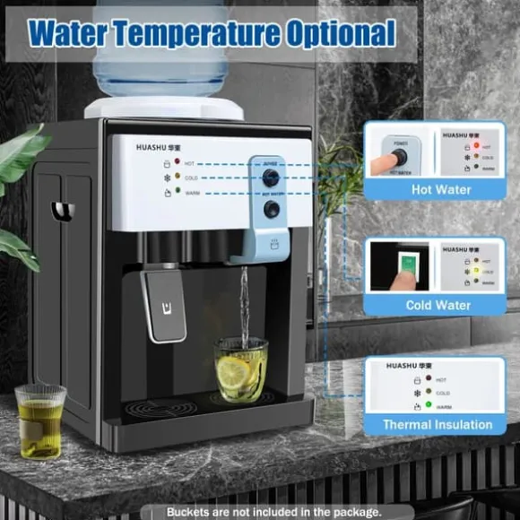 Den toppmatade designen gör flaskbyten smidiga, medan tre indikatorlampor visar uppvärmning, kylning och beredskap. Perfekt för hem, kontor, sovrum eller butik.