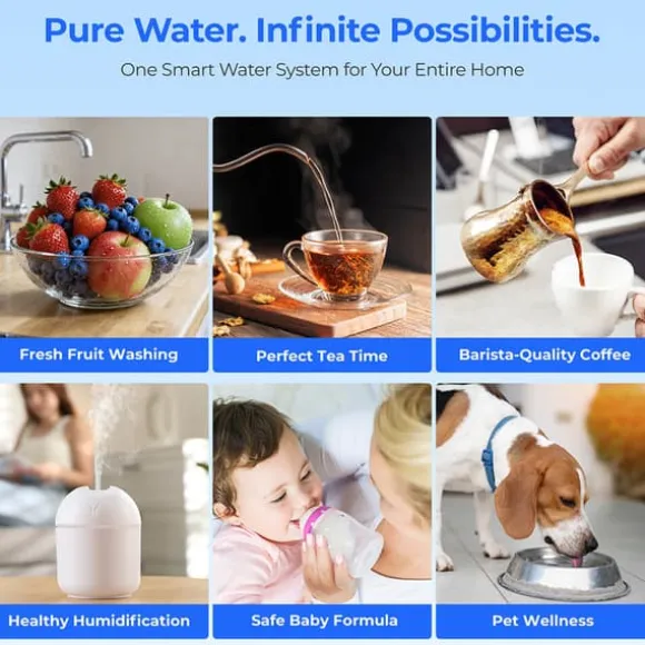 Förvandla vanligt kranvatten till exceptionell renhet med vårt avancerade 6-stegssystem (PP-CTO-PCF-MIN-RO-UV) med ett RO-membran på 0,0001 μm med hög precision. Denna anmärkningsvärda teknik eliminerar upp till 95 % av TDS och mer än 1 000 skadliga föroreningar, inklusive tungmetaller, fluorid, klor och skadliga bakterier. Till skillnad från traditionella luftrenare som lämnar vattnet vid sin finhet, fyller vår avancerade remineraliseringsteknik aktivt på viktiga mineraler och harmoniserar pH-nivåerna – vilket ger uppfriskande rent, mineralrikt vatten som stöder optimalt välbefinnande med varje klunk.