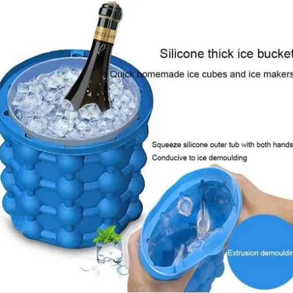 Håll din is kall med denna vackert designade ishink av hög kvalitet. Tillsätt vatten i ishinkens kant och låt det rinna längs kanten, tryck på hinken för att tömma bottenvattnet, lägg sedan på locket och ställ i kylen vänta i flera timmar. du behöver fler isbitar, fyll bara på och frys in igen för ytterligare en sats isbitar