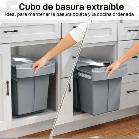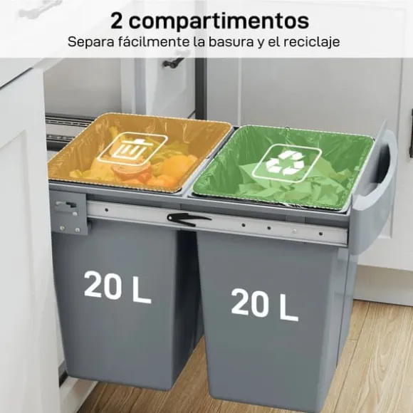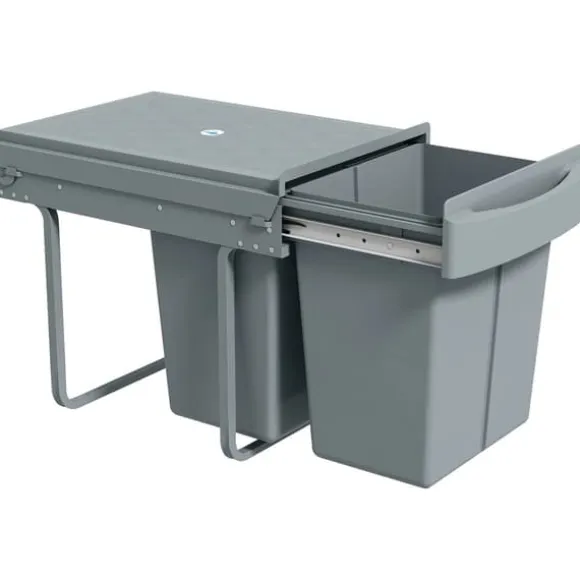 Integrerad kökssortering 2 x 20 l – diskret och rymligHåll bänkarna fria och köket fräscht: den här inbyggda avfallslösningen göms i skåpet, rymmer två 20 l-behållare (totalt 40 l) och glider ut mjukt för enkel åtkomst med en hand.