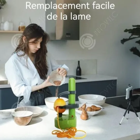 Användning: Potatis, äpplen, päron (om toppen och botten mäter mindre än 2-3 cm, är skalningstiden för lång). För potatis eller frukter med grov yta, använd spetsen under maskinen för att ta bort den grova ytan innan skalning.