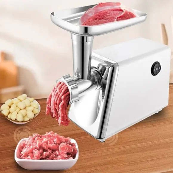 3, Robust kraft: Den elektriska kötthackaren med en motor på 300W erbjuder robust kraft, vilket garanterar en snabb och smidig hackningsprocess, kapabel att hacka cirka 0,75 kg kött på 1 minut.