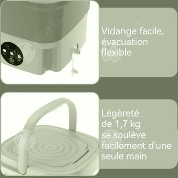 2. Exakt kapacitet på 9L: Tvättmaskinen har en kapacitet på 9 liter, vilket är perfekt för att tvätta små artiklar som underkläder, babykläder, strumpor osv. Den möter tvättbehovet i små hushåll, för ensamma personer eller i rörliga situationer, vilket förhindrar slöseri med vatten och elektricitet jämfört med en stor tvättmaskin, med en praktisk kapacitetsdesign.
