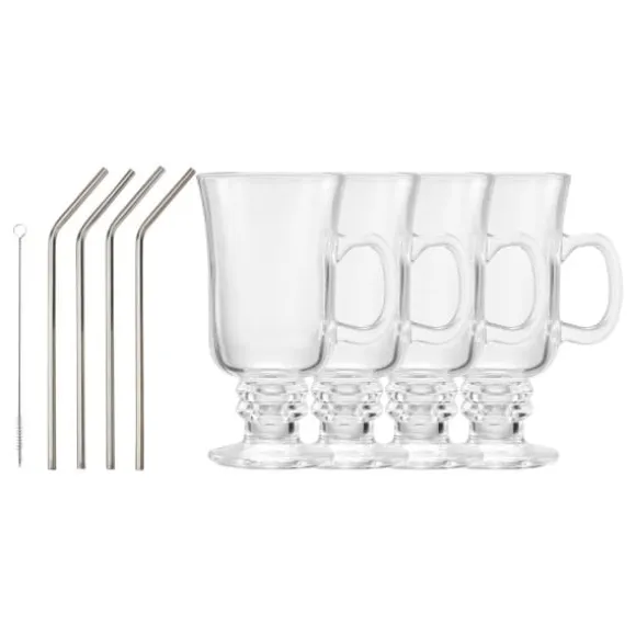 I detta enkla och tidslösa set ingår fyra klassiska glas med öra och tillhörande sugrör i rostfritt stål. Med detta set kan du servera drinkarna på ett fint och elegant sätt.