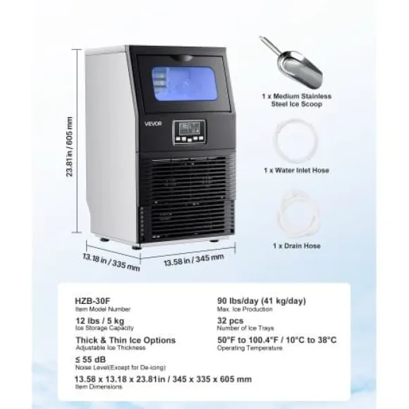 Denna kommersiella ismaskin levererar effektiv och pålitlig isproduktion, vilket gör den idealisk för hemmabarer, restauranger eller lättare kommersiella miljöer. Med intuitiva LED-kontroller, självrengöringsfunktion och en elegant design i rostfritt stål erbjuder den enkel användning och lätt underhåll. Dess tysta drift och flexibla placeringsmöjligheter säkerställer att den smälter in sömlöst i olika utrymmen.