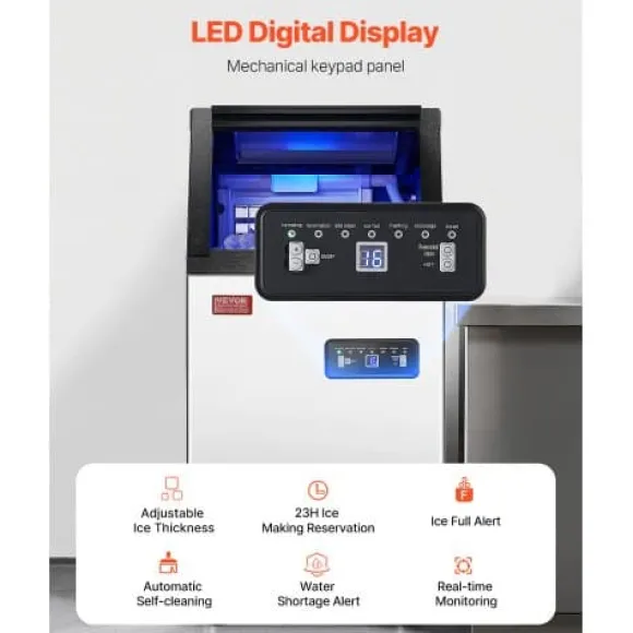 Denna kommersiella ismaskin är idealisk för barer, restauranger, kontor eller hemmabruk och levererar effektiv och tyst isproduktion med stor lagringskapacitet. Med självrengöringsfunktion, vattenfilter och smart LED-kontrollpanel säkerställs ren is och enkel användning. Den kompakta, isolerade designen håller isen färsk i flera timmar även när den inte används.