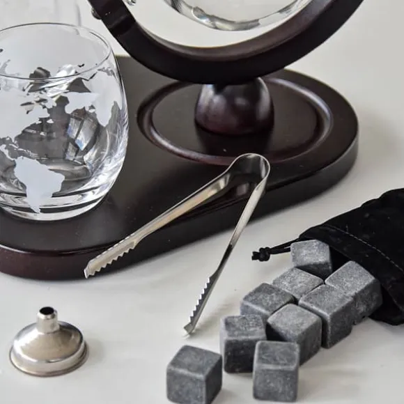 Innehåller: 2 matchande glas, 1 karaff, 1 istång, 1 tratt i rostfritt stål och en påse i sammet med 9 whiskeystenar.