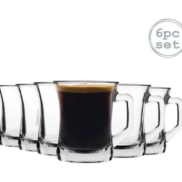 Upptäck uppsättningen med 6 kaffekoppar i klarglas från LAV, som kombinerar elegans och funktionalitet. Perfekt för dina varma eller kalla drycker, dessa moderna koppar erbjuder ett bekvämt grepp tack vare det stora handtaget. Tål diskmaskin, de är idealiska för daglig användning hemma eller på kontoret.