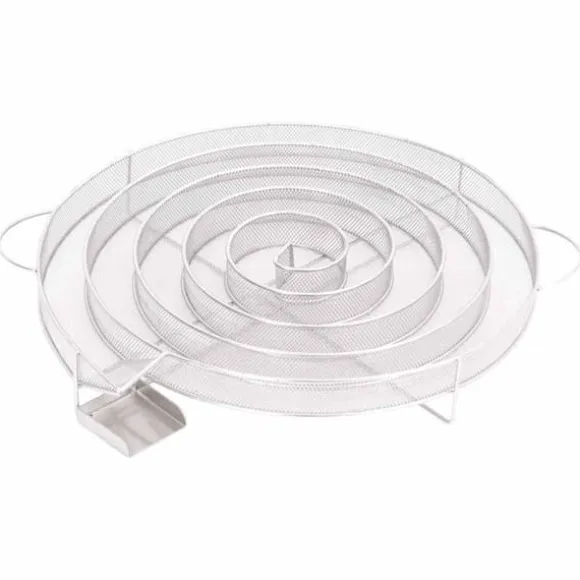 - Massiv gallerkonstruktion: Det snigelformade kompakta nätet gör att rökflisarna kan brinna jämnt och långsamt i upp till 20 timmar. Varaktigheten beror till stor del på rökträets natur. För bästa resultat rekommenderas att du använder chips med en kornstorlek på 0,5-2,0 mm.