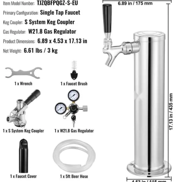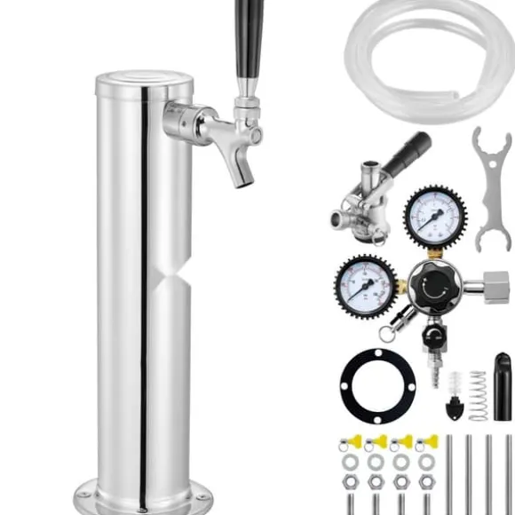 Tillverkad av premium 304 rostfritt stål, öltornet med en kran erbjuder exceptionell hållbarhet och tillförlitlighet, perfekt för både kommersiella och hemmabrukare. Denna kegerator tornsats innehåller en 5 fots ölslang, 1 S-system fatkoppling, 1 dual gauge W21.8 regulator, 1 krannyckel, 1 rengöringsborste, 1 krankåpa och en uppsättning monteringstillbehör.