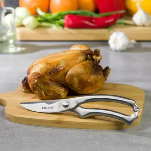 KINGHOFF fjäderfä köksaxar är tillverkade helt av högkvalitativt rostfritt stål. De är designade för portionering av alla typer av fjäderfä. Bladet håller benen säkert medan du skär, och stängningskroken underlättar säker förvaring. Tål diskmaskin.
