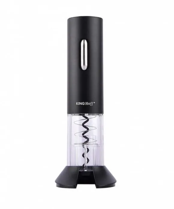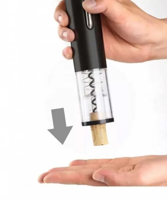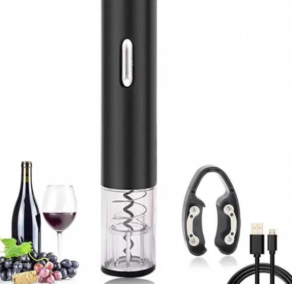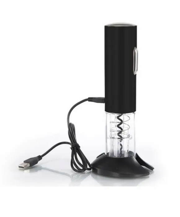 En elektrisk vinkorkskruv som enkelt kan öppna vilken korkad flaska som helst. Batteridriven. I setet ingår även en folieskärare som även fungerar som stativ. Den unika kombinationen av elegant utseende och hög kvalitet är den bästa lösningen, rekommenderad för personer som värdesätter tidlös stil. Pålitlig drift och enkel drift garanterar att du väljer utrustning som du kommer att använda under lång tid och utan några problem korkskruv drar ut korken ur flaskan med en knapptryckning.- Designad för att passa alla traditionella vinflaskor.- Tillbehör: folieskärare placerad i basen av stativet och kabel. USB.- Trådlös drift (kräver batteriladdning). – Den kännetecknas av extremt tyst drift på cirka 50 dB – Vid full batterikapacitet öppnar den upp till 50-60 flaskor på en laddning. Laddningstiden beskrivs i bruksanvisningen. Färg: svart/transparent