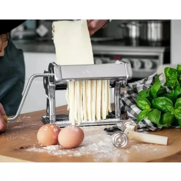 Med denna pastamaskin kan du njuta av den fräscha smaken av hemlagad pasta, vilket ger dina rätter en unik smak och arom som inte kan jämföras med torkad pasta. Den är perfekt för att förbereda traditionella italienska måltider och gör det enkelt att experimentera med olika former och mönster av pasta.