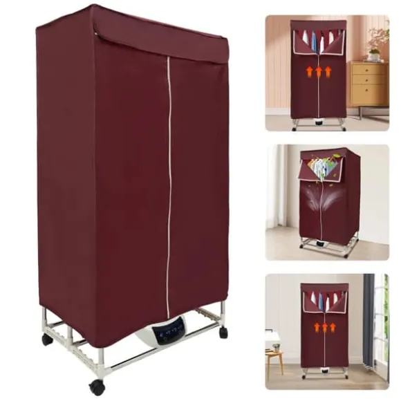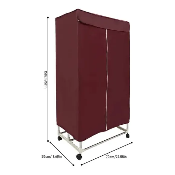 Elektrisk klädtork med skyddshuva – snabb, skonsam och flexibelDen här kompakta klädtorken med skyddande överdrag torkar kläder, handdukar och jeans effektivt. Smart ställning låter dig växla mellan enkel- och dubbelnivå för både långa och korta plagg, medan överdraget håller damm och fukt borta – perfekt i hem, lägenheter, husvagnar, hotell och tvättutrymmen.