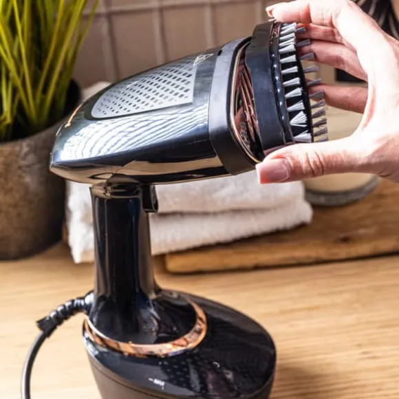 - Vertikal ångning: Gör att du bekvämt kan fräscha upp gardiner, draperier och andra stora tyger utan att behöva ta bort dem.