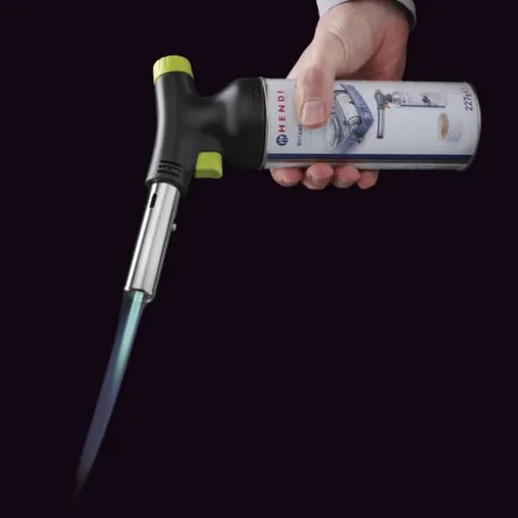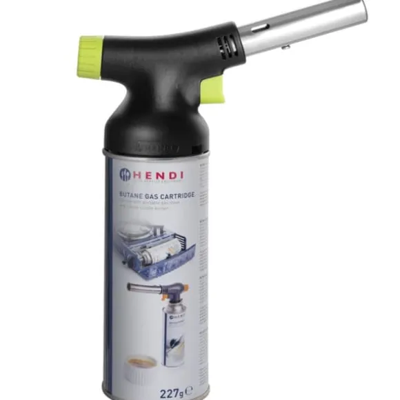Producentens kode: 198247 Hendi gasbrænderen er perfekt til termisk behandling, fyring og andre kreative anvendelser i ethvert køkken. Brænderen er skabt i samarbejde med en af de bedste industrielle designere – Robert Bronwasser. Brænderen har en temperaturstabilisator – den opnår den optimale flammetemperatur fra første sekund – 1300°C. Gentagelighed opstår takket være BLUE HEAT-systemet. Brænderen har den længste branddyse på 100 mm. Gælleluftindtaget giver luftindtag med større kapacitet. Høj flammestyrke garanterer kulfri forbrænding. Brænderen har også jævn flammelængdekontrol i området 15-150 mm. Perfekt til garvning: sukkerarter, proteiner, oste, frugter, grøntsager og kød. Gaskappen er sammensat af et afdækningsdæksel og en enkelt-pass ventil, der giver permanent driftsbeskyttelse mod interferens fra flammer fra brændte råmaterialer på gasventilen. Den er pålidelig – flammeinitiatoren bruger elektriske udladninger som følge af mekanisk påvirkning. Du trykker på knappen og det virker – du behøver hverken udskifte slibestenene eller købe en anden brænder. Indikatoren placeret på sikkerhedsdækslet letter hurtig installation med et enkelt klik. Brænderen giver en jævn flamme i alle arbejdsstillinger og i enhver vinkel, også opad. Produktegenskaber: – Designet af Robert Bronwasser med kokke i tankerne, – Moderne design: matsort med grøn accent, ergonomisk håndtag, – Jævn flamme i alle arbejdsstillinger, også rettet opad, – Nem og sikker installation af gaspatronbrænderen, – Den piezoelektriske tænder giver dig mulighed for nemt at tænde brænderen, – Den store gasknap giver dig mulighed for nemt at justere størrelsen og intensiteten af flammen. Tekniske parametre: – Katalognummer – 198247 – Stand – Ny – Mål – 185x65x(H)100 mm Sættet indeholder: – Kokkebrænder – INGEN INDSÆT MEDFØLGER