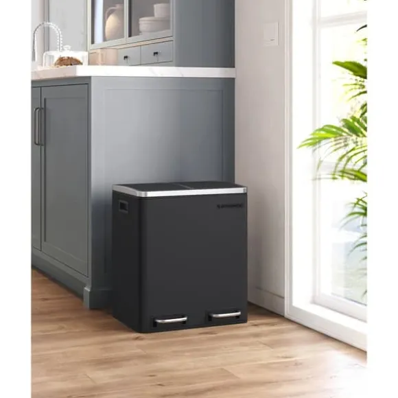 Vad du får med: En modern soptunna med 2 x 15 liters fack, så att du enkelt kan sortera soporna för återvinning och få ett rent hem