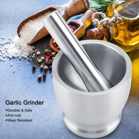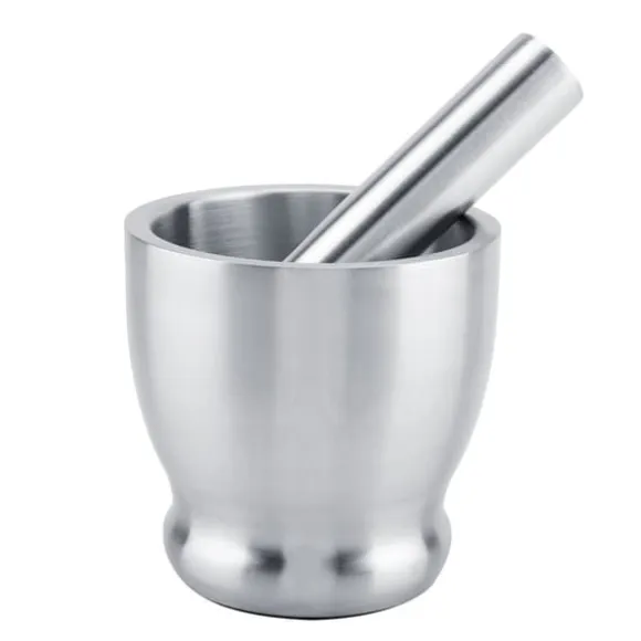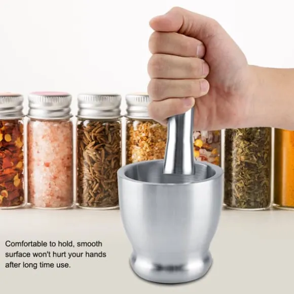 Välkommen till vår butik! Mortelstöten är gjord av högkvalitativt rostfritt stålmaterial, vilket säkerställer hållbarhet, rostbeständighet och slitstyrka. Den är perfekt för att krossa och mala vitlök, örter, kryddor, piller, sesamfrön och mer.
